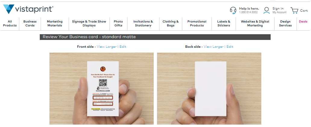 Want economy? Vistaprint shows you a ‘proof’ before you order. You get 500 standard business cards (nothing fancy, gets the job done!) for only $20 bucs – and you may be able to find a ‘discount code’ from tv or by searching Google: